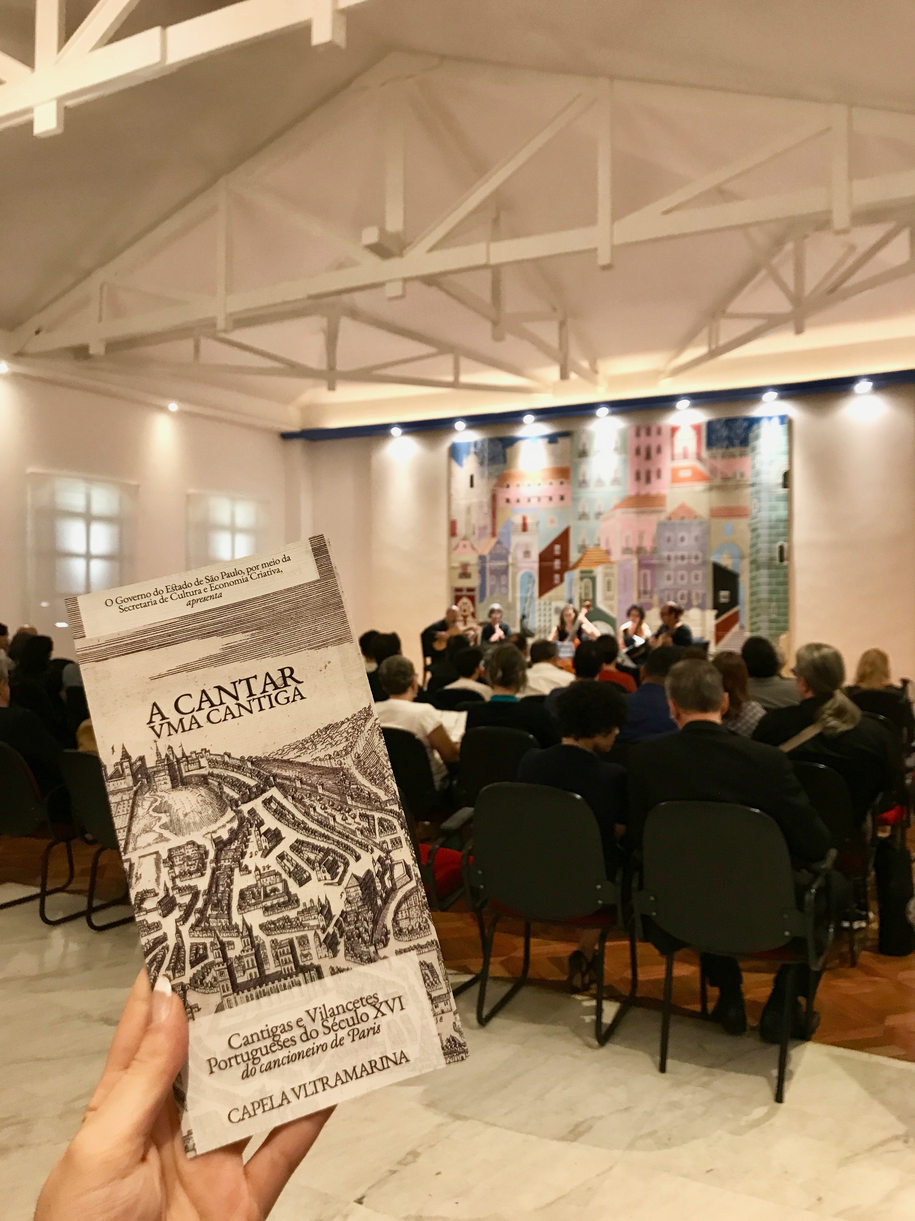 A Capela Ultramarina une-se ao Conselho da Comunidade Luso Brasileira nas comemorações do dia da Comunidade Luso-Brasileira, no dia 22 de abril, com o concerto de lançamento do CD “A Cantar uma Cantiga”, com um repertório de música portuguesa do século XVI. O programa apresentado traz peças escritas no período dos descobrimentos, todas sobre poemas em língua portuguesa. O Álbum “A Cantar uma Cantiga” é uma realização da Capela Ultramarina com suporte do ProAC-Editais, da Secretaria de Estado da Cultura e Economia Criativa e do Governo do Estado de São Paulo.